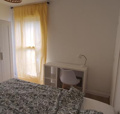 Chambre meublée avec placard à louer dans appartement spacieux avec balcon.