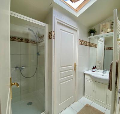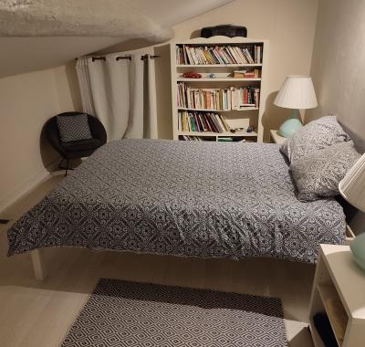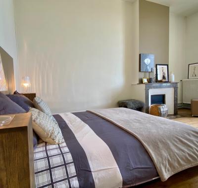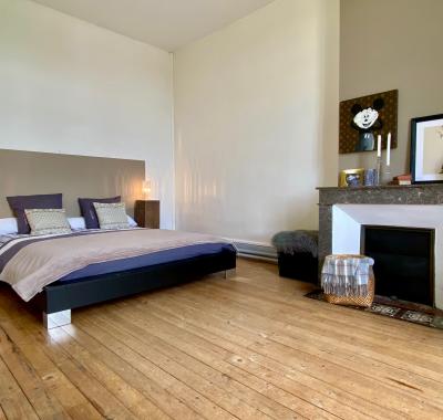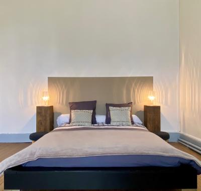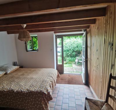 Au rez-de-chaussée d'une jolie maison de Maître en pierre, cette chambre a un grand lit en 180 ...