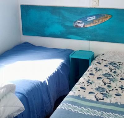 Espace nuit avec lit double (140 cm) (possibilité lit de 90 en + 1 couchage dans le canapé lit)...