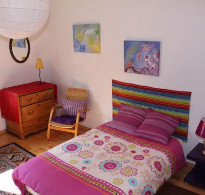 Chambre avec lit de 1.60 m salle de bain attenante et Wc dans pavillon individuel