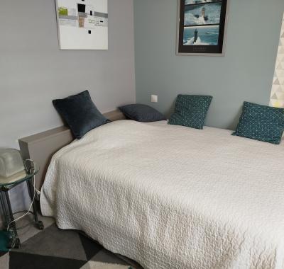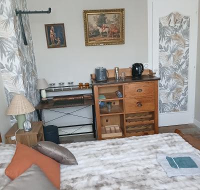 Chambre rez-de-chaussée avec lit double 160X200 avec WC côté couloir,vu sur le jardin avec entr...