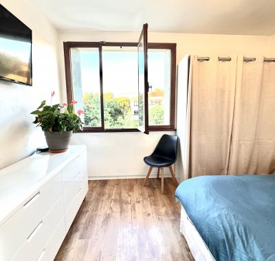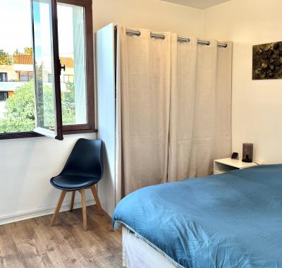 Appartement au calme dans un cadre verdoyant, une belle chambre meublée avec 1 lit en 140, plac...