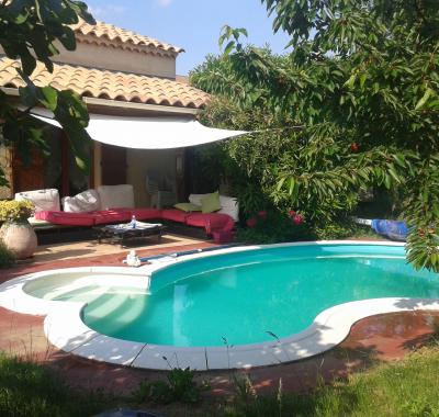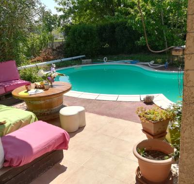 Chambre dans belle villa moderne avec piscine. A 2 minutes d ‘Aubenas au calme dans la nature; ...