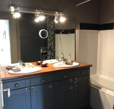 Chambre double avec salle de bain/wc privatif, linge, TV, électroménager de base, enceintes.
