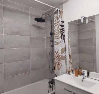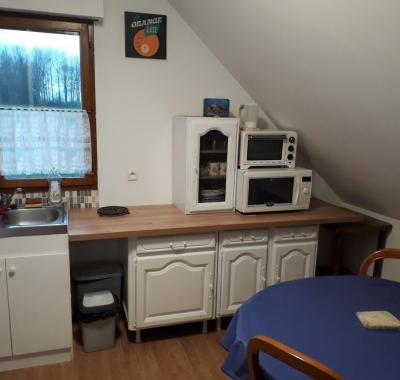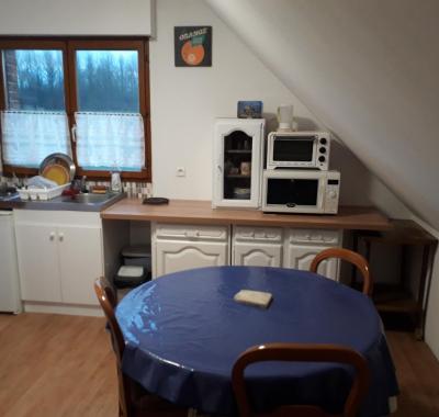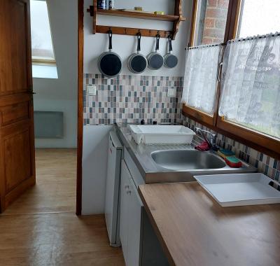Chambre de 13 m2 meublée. A disposition une cuisine, SDB avec douche et lavabo,