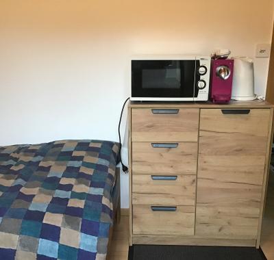 Chambre d'environ 20 m^2 avec salle de douche privée. À ...
